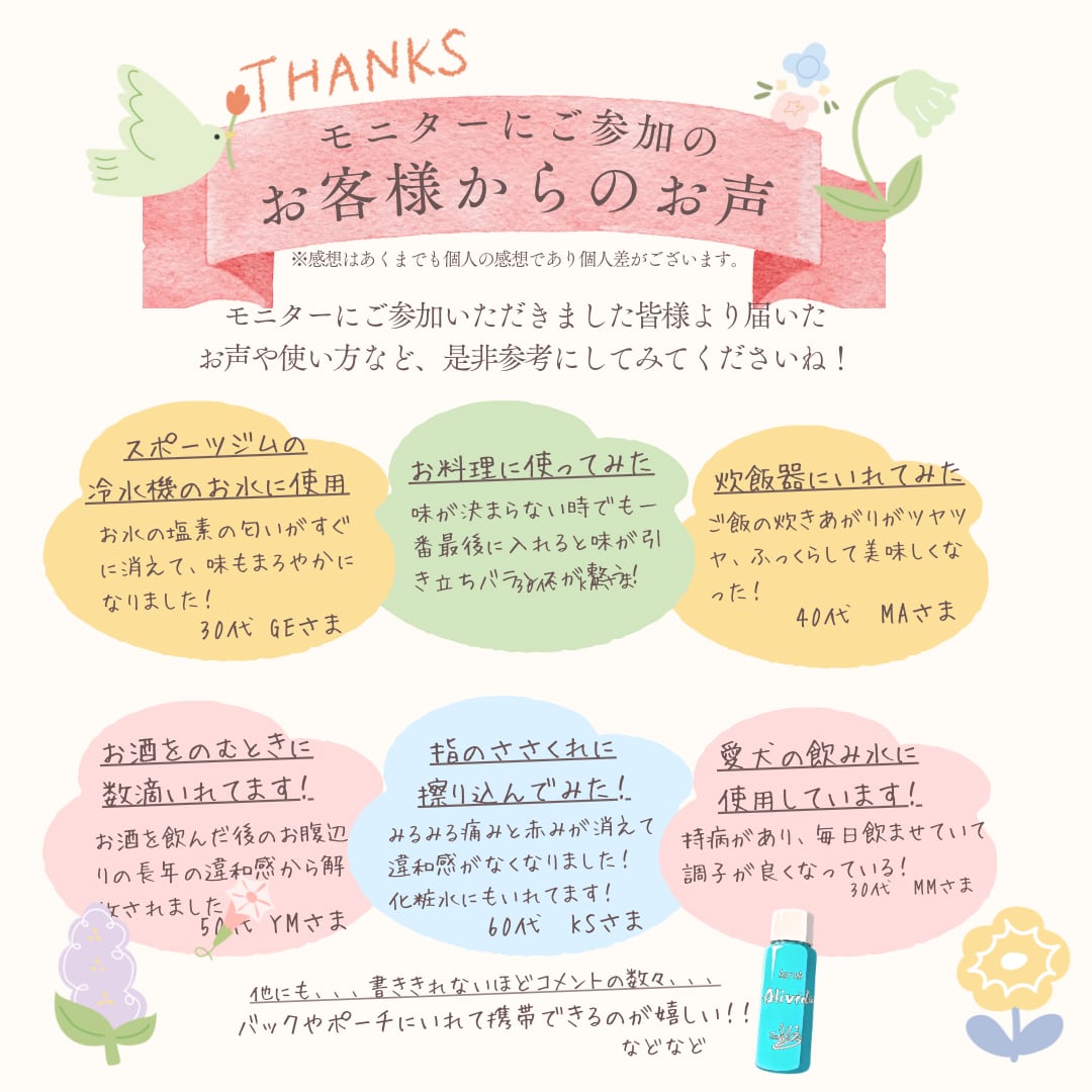 ※それぞれ初めは1滴からお試しください)